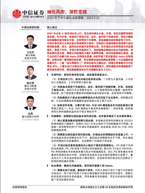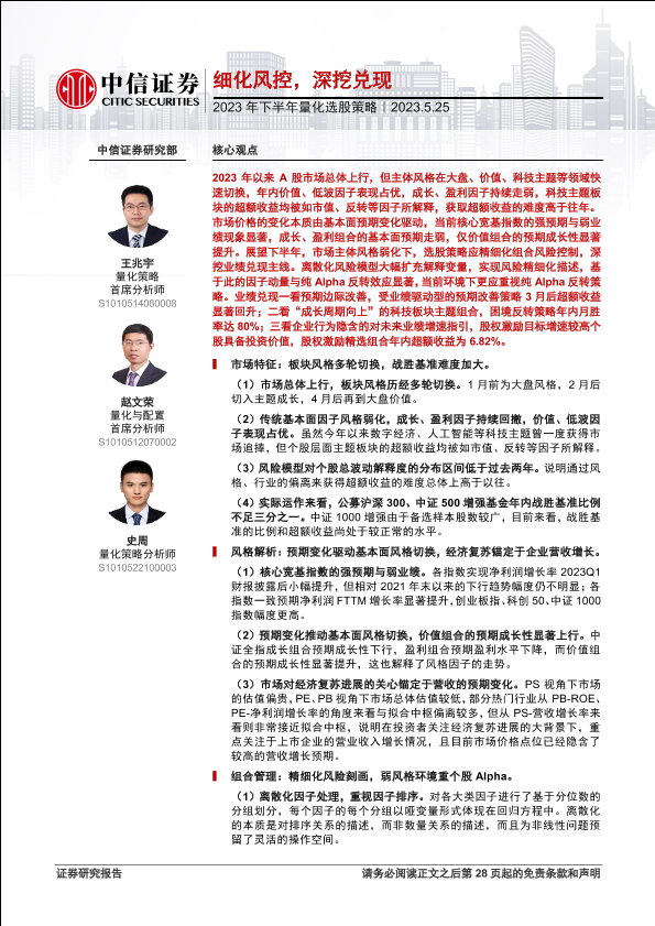 【中信证券】【20230525】2023年下半年量化选股策略:细化风控,深挖兑现-31页