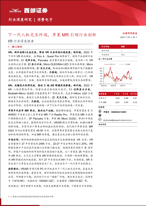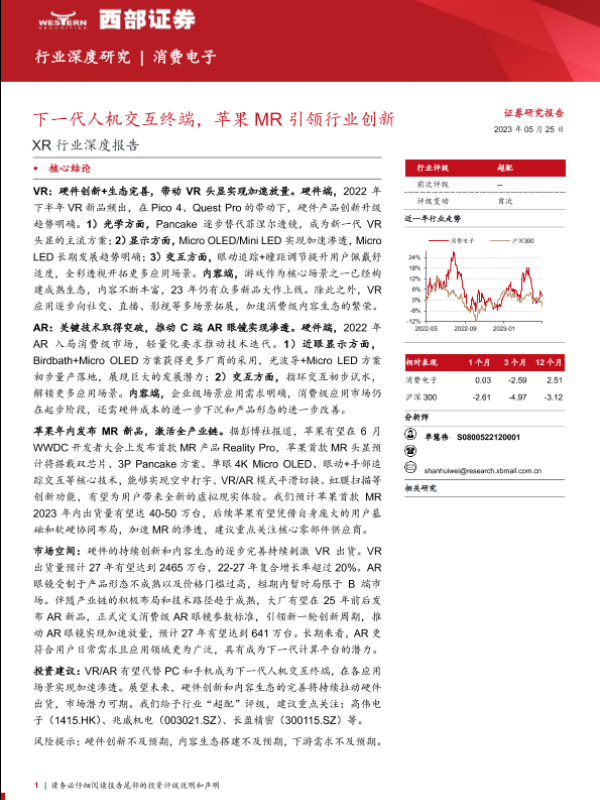 【西部证券】【20230525】XR行业深度报告:下一代人机交互终端,苹果MR引领行业创新-33页