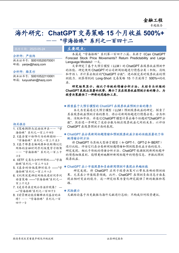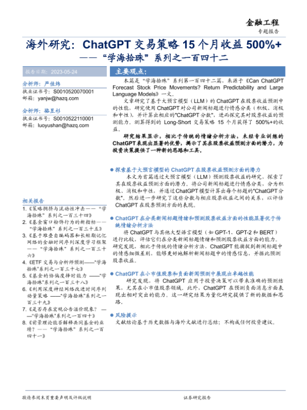 【华安证券】【20230524】“学海拾珠”系列之一百四十二:海外研究,ChatGPT交易策略15个月收益500%-16页