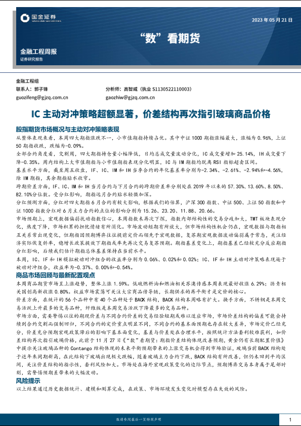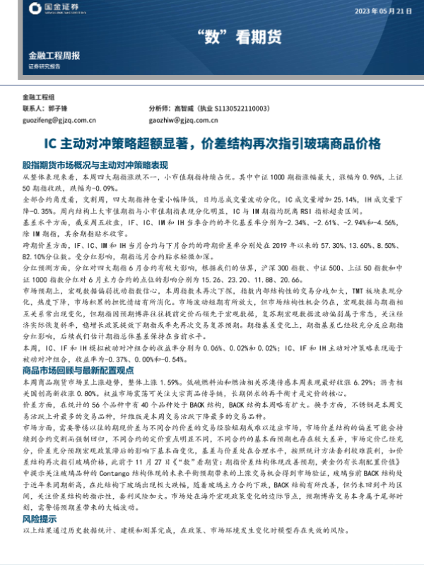 【国金证券】【20230521】“数”看期货:IC主动对冲策略超额显著,价差结构再次指引玻璃商品价格-15页