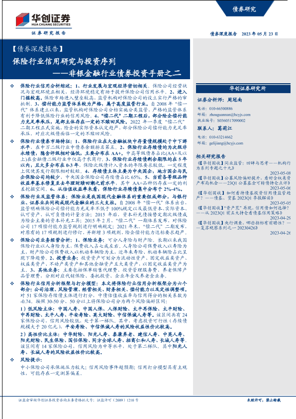 【华创证券】【20230523】【债券深度报告】非银金融行业债券投资手册之二:保险行业信用研究与投资序列-30页