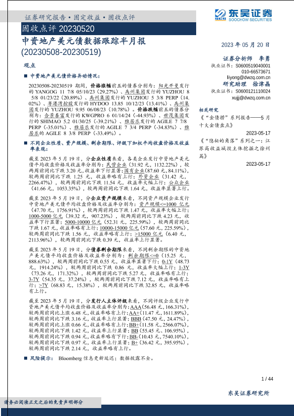 【东吴证券】【20230520】中资地产美元债数据跟踪半月报-20230520-44页