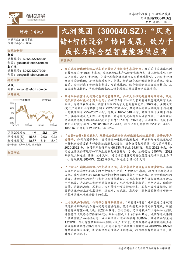 【德邦证券】【20230526】九洲集团(300040)“风光储+智能设备”协同发展,致力于成长为综合型智慧能源供应商-25页