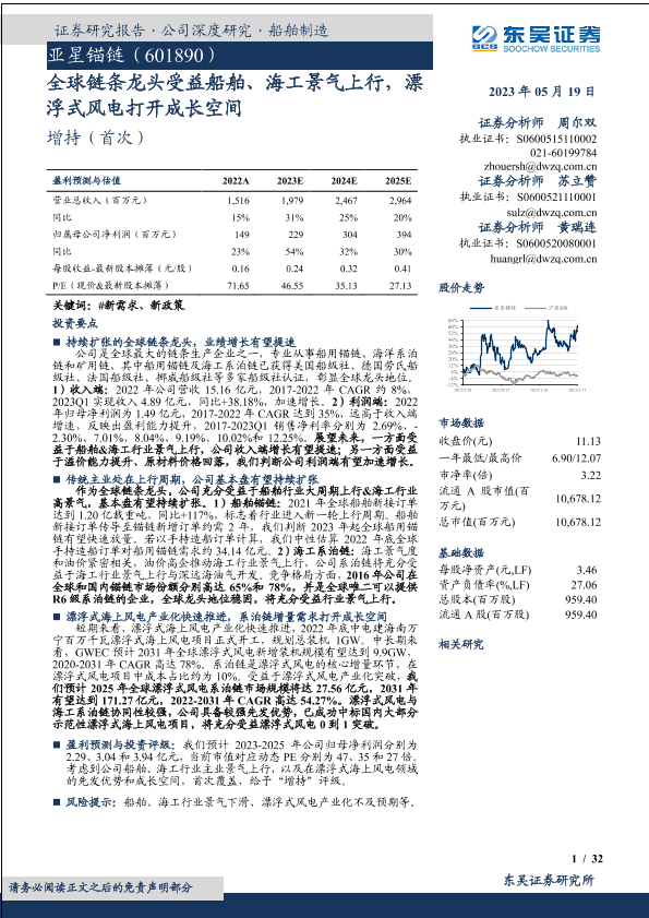 【东吴证券】【20230519】亚星锚链601890.SH全球链条龙头受益船舶、海工景气上行,漂浮式风电打开成长空间-32页
