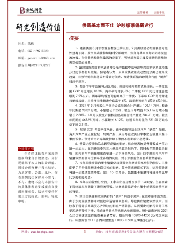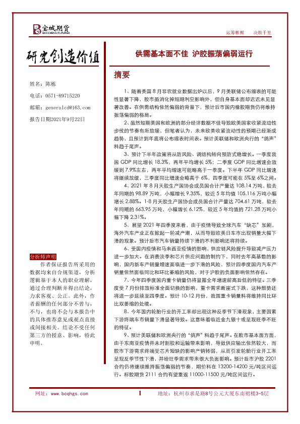 【宝城期货】【20210922】供需基本面不佳,沪胶振荡偏弱运行-29页