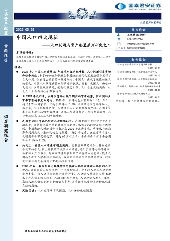 【国泰君安证券】【20230525】中国人口四大现状-30页