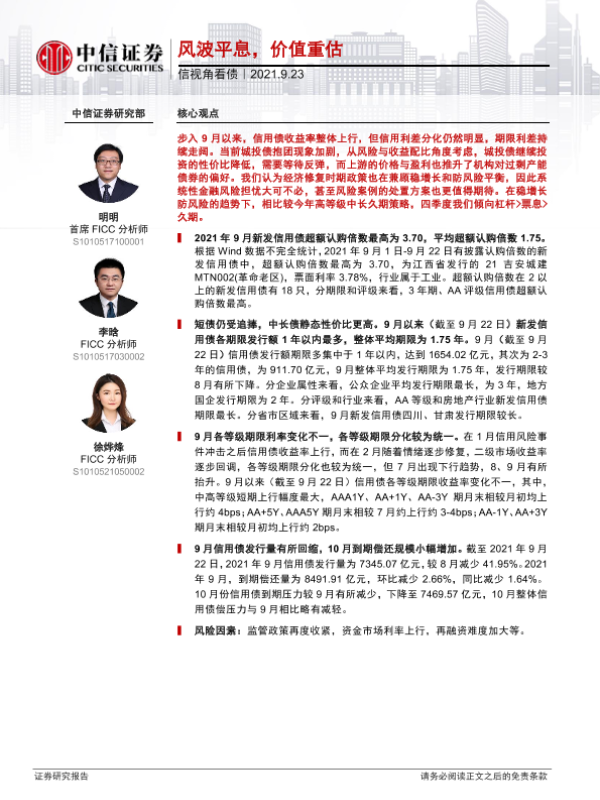 【中信证券】【20210923】信视角看债:风波平息,价值重估-20页