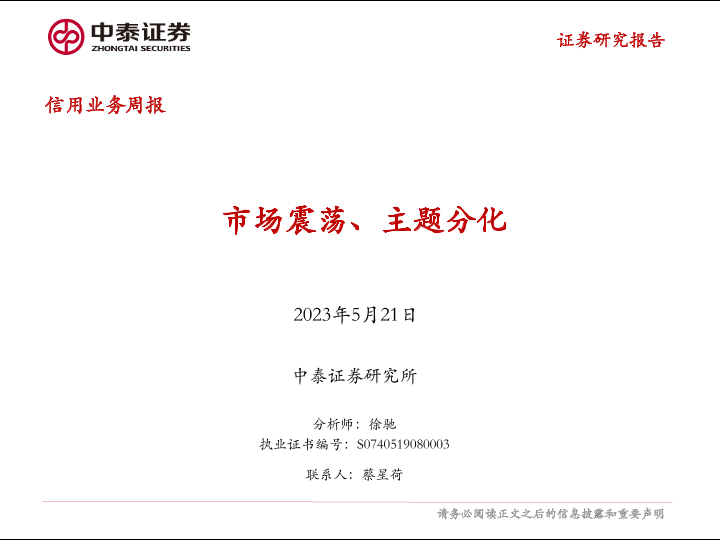 【中泰证券】【20230521】信用业务周报:市场震荡、主题分化-17页