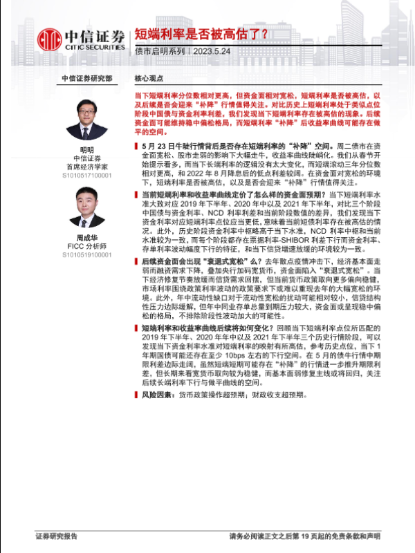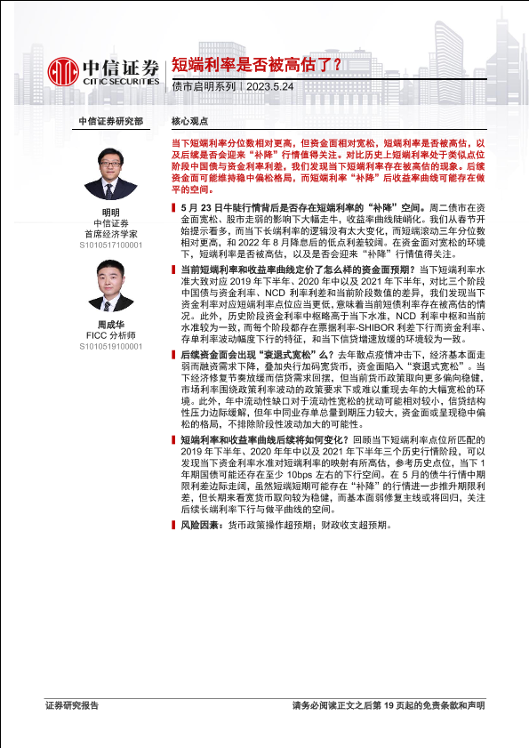 【中信证券】【20230524】债市启明系列:短端利率是否被高估了?-20页