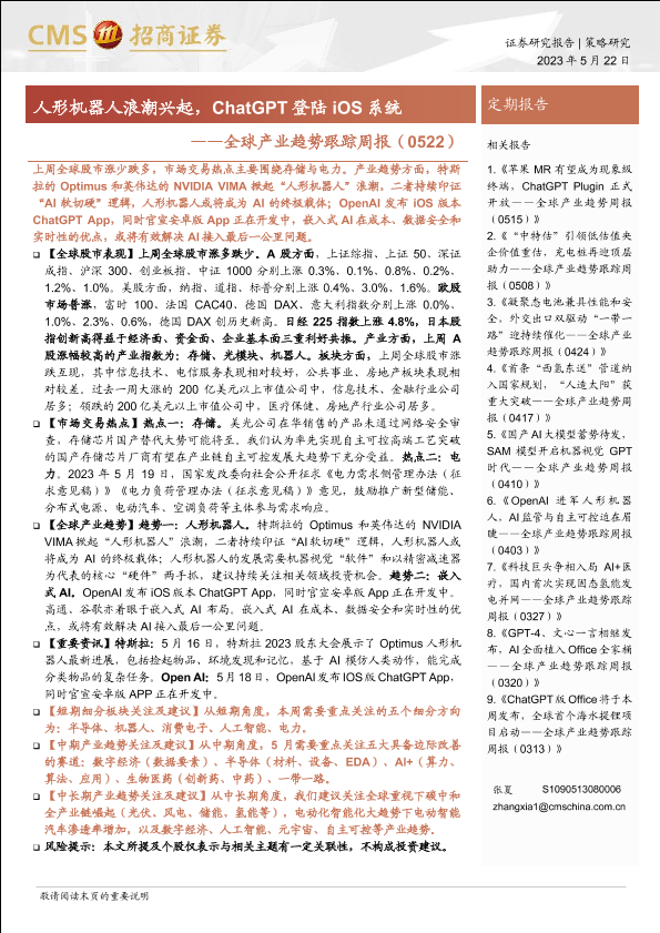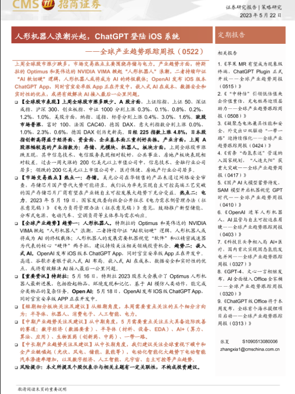 【海通证券】【20230522】全球产业趋势跟踪周报:人形机器人浪潮兴起,ChatGPT登陆iOS系统-35页