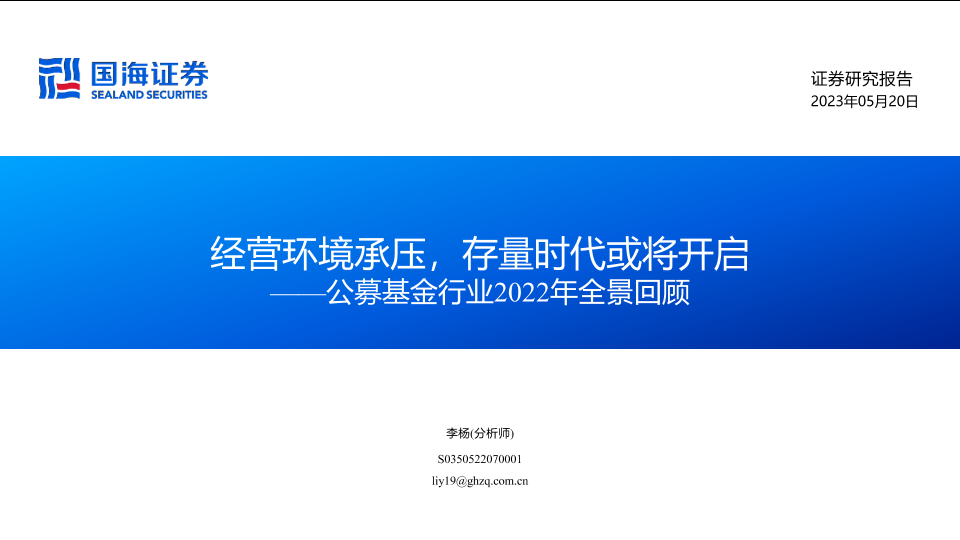 【国海证券】【20230520】公募基金行业2022年全景回顾:经营环境承压,存量时代或将开启-60页
