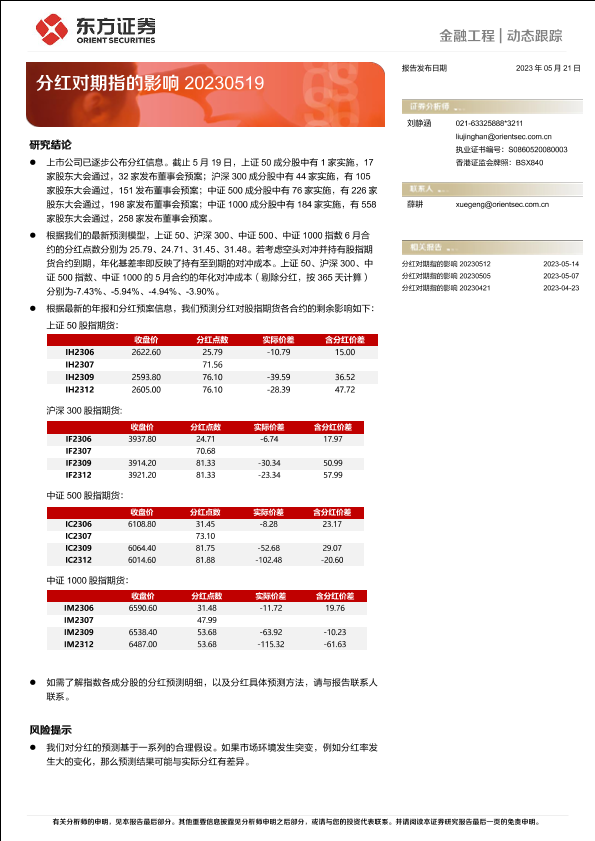 分红预测 投资分析 期指影响 股指期货 金融工程