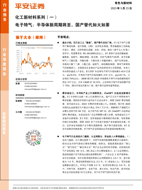 【平安证券】【20230523】化工新材料行业系列(一):电子特气,半导体新周期将至,国产替代如火如荼-49页