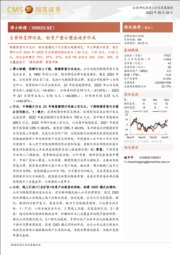 【海通证券】【20230522】博士眼镜(300622)自营修复弹性高,轻资产整合壁垒逐步形成-23页