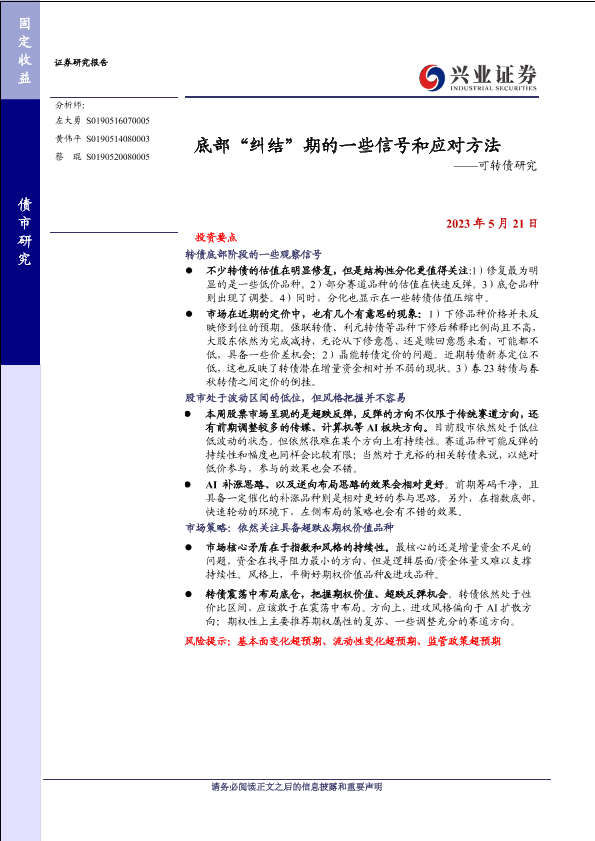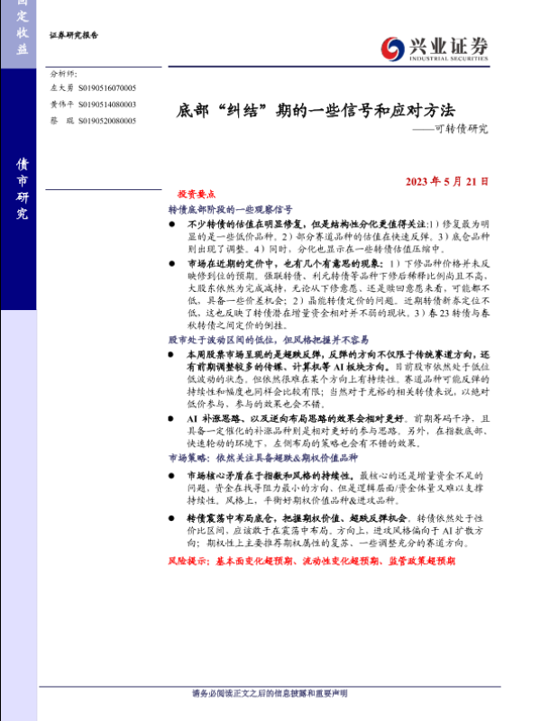 【兴业证券】【20230521】底部“纠结”期的一些信号和应对方法——可转债研究-21页