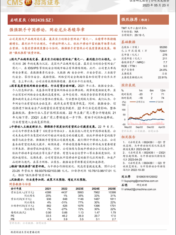 【海通证券】【20230523】启明星辰(002439)强强联手中国移动,网安龙头再续华章-19页