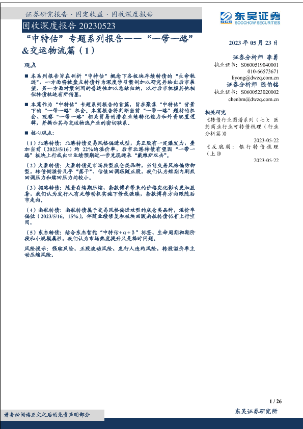 【东吴证券】【20230523】固收深度报告:“中特估”专题系列报告_“一带一路”&交运物流篇(1)-26页