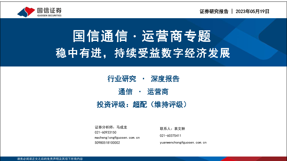 【国信证券】【20230519】国信通信∙运营商专题:稳中有进,持续受益数字经济发展-36页