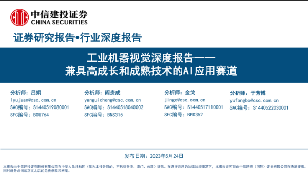 【中信建投证券】【20230524】工业机器视觉行业深度报告:兼具高成长和成熟技术的AI应用赛道-89页
