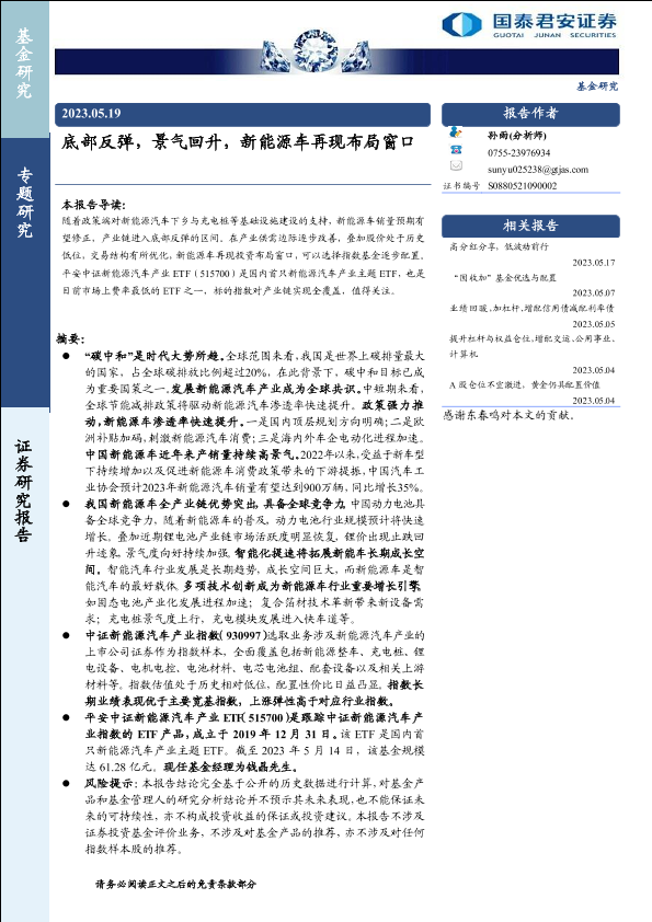【国泰君安证券】【20230519】底部反弹,景气回升,新能源车再现布局窗口-15页