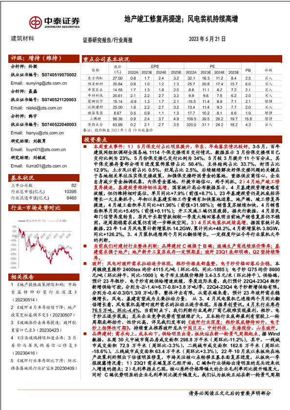 【中泰证券】【20230524】建筑材料行业周报:地产竣工修复再提速;风电装机持续高增-24页