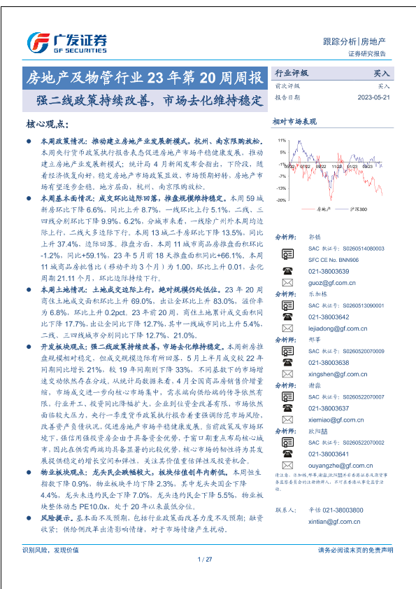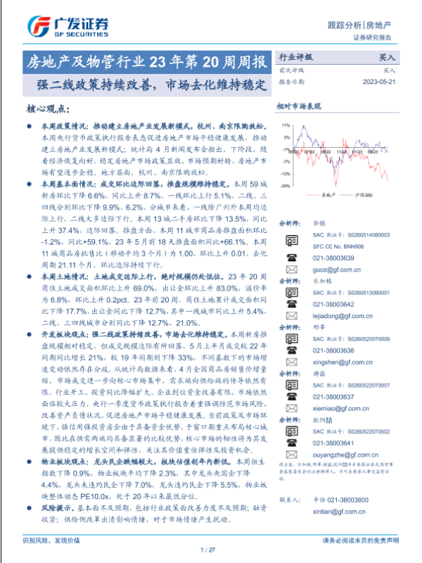 【广发证券】【20230521】房地产及物管行业23年第20周周报:强二线政策持续改善,市场去化维持稳定-27页