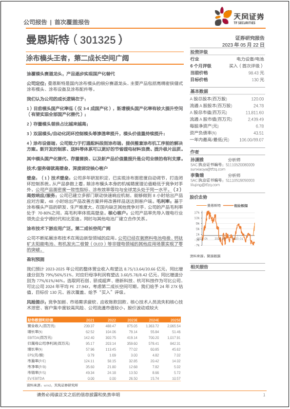 【天风证券】【20230522】曼恩斯特-301325.SZ-涂布模头王者,第二成长空间广阔-37页