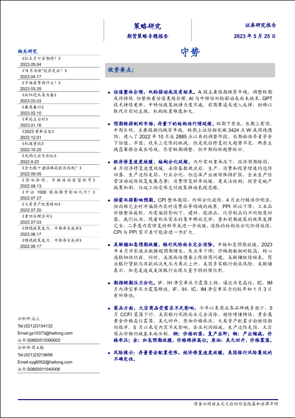 【海通证券】【20230525】期货策略专题报告:守势-24页