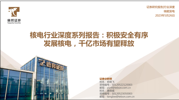 【德邦证券】【20230526】核电行业深度系列报告:积极安全有序发展核电,千亿市场有望释放-43页