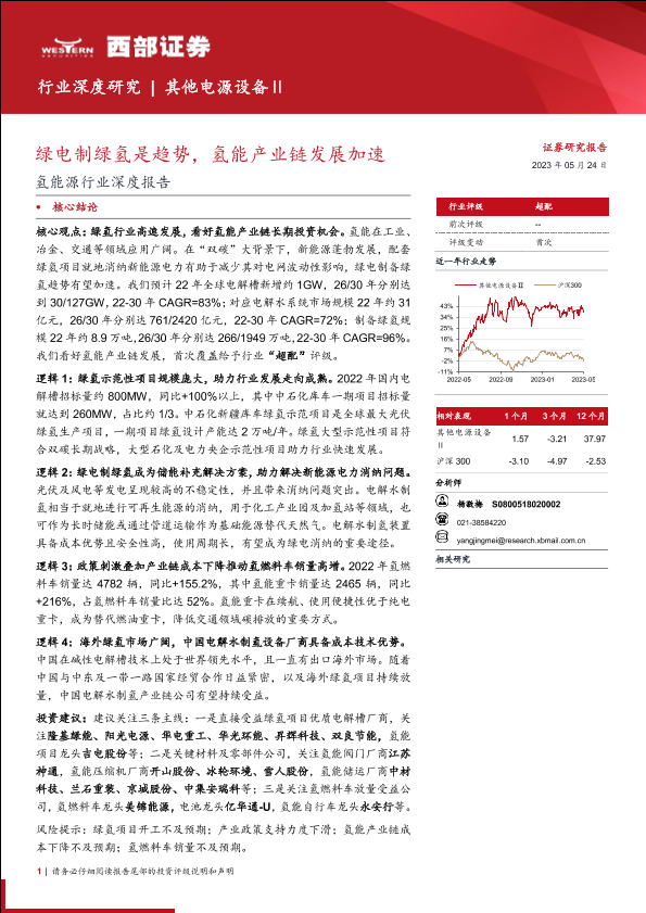 【西部证券】【20230524】氢能源行业深度报告:绿电制绿氢是趋势,氢能产业链发展加速-79页