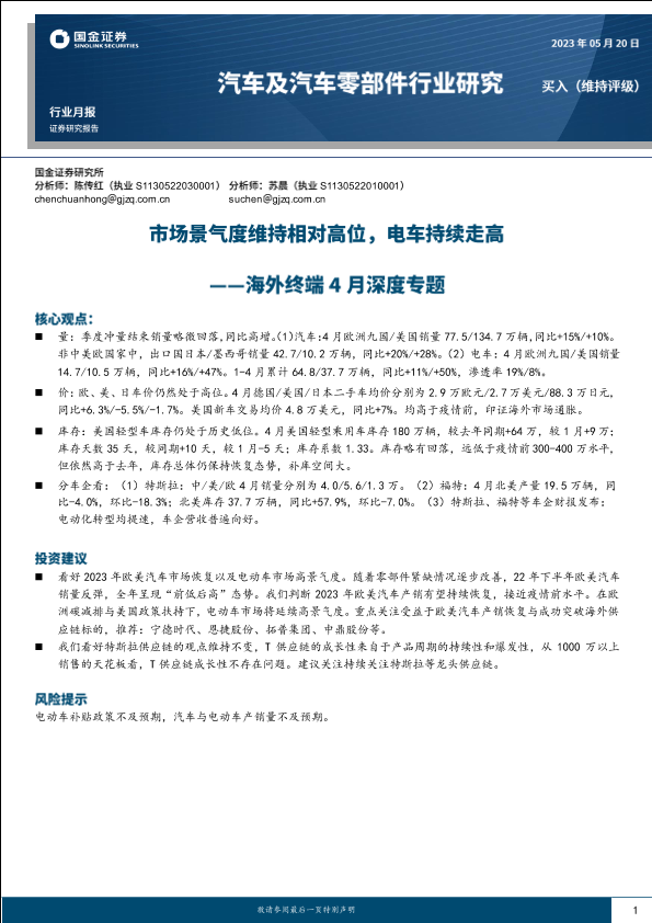 【国金证券】【20230520】汽车及汽车零部件行业海外终端4月深度专题:市场景气度维持相对高位,电车持续走高-19页