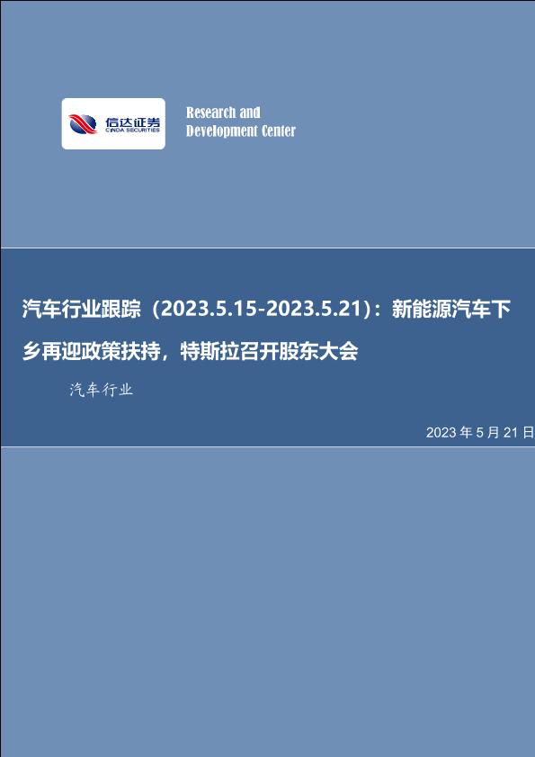 【信达证券】【20230521】汽车行业跟踪(2023.5.15-2023.5.21):新能源汽车下乡再迎政策扶持,特斯拉召开股东大会-19页
