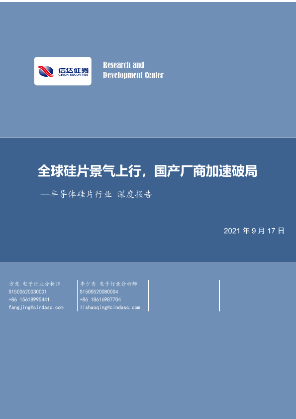 【信达证券】【20210917】全球硅片景气上行,国产厂商加速破局-36页