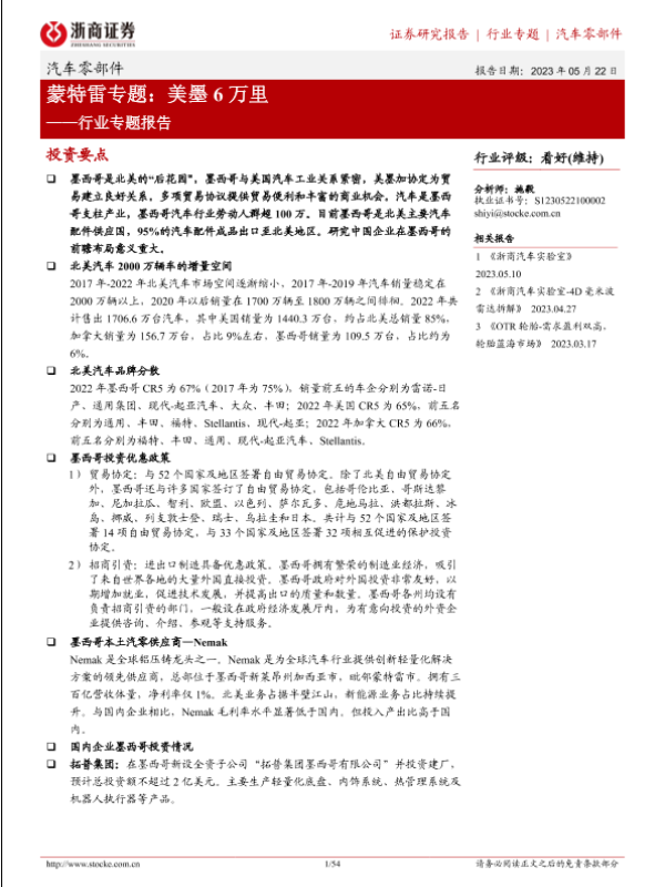【浙商证券】【20230522】汽车零部件行业专题报告:蒙特雷专题:美墨6万里-54页