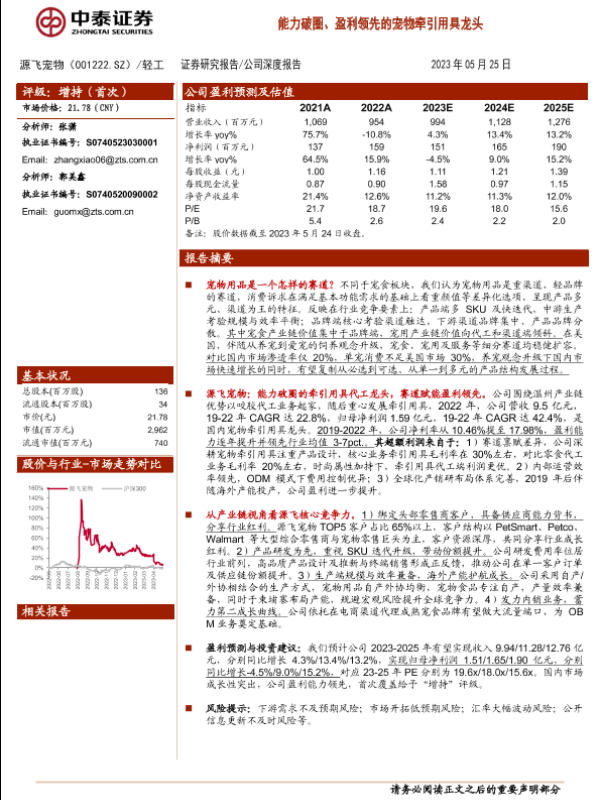 【中泰证券】【20230525】源飞宠物(001222)能力破圈、盈利领先的宠物牵引用具龙头-38页