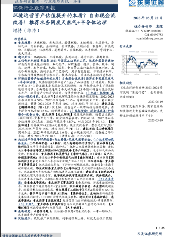 【东吴证券】【20230522】环保行业跟踪周报:环境运营资产估值提升的本质?自由现金流改善!推荐水务固废天然气+半导体治理-35页