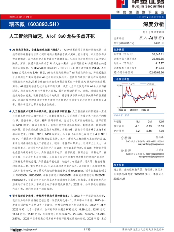 【华金证券】【20230521】瑞芯微(603893)人工智能再加速,AIoT SoC龙头多点开花-36页