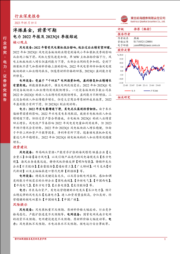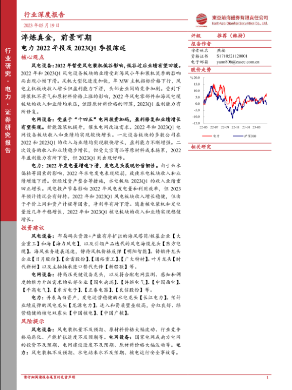 【东亚前海证券】【20230519】电力2022年报及2023Q1季报综述:淬炼真金,前景可期-28页