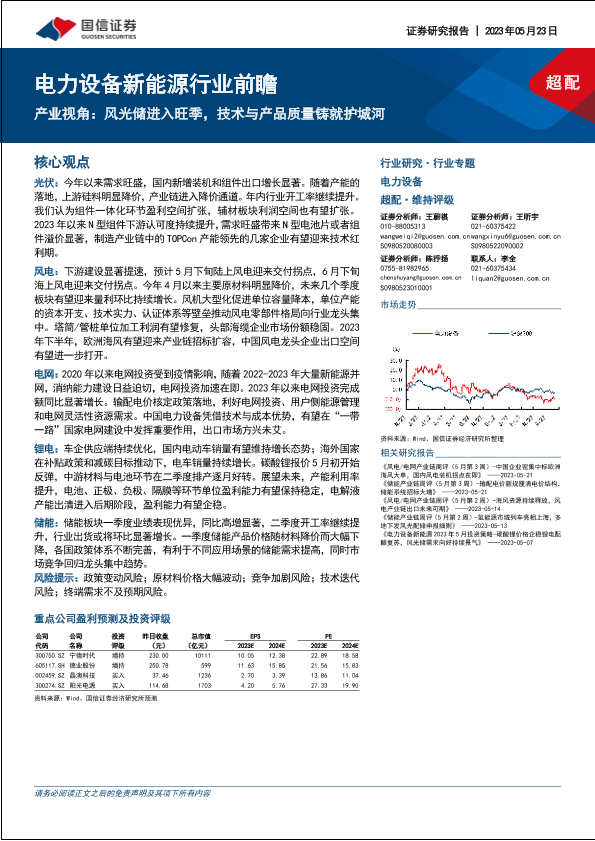 【国信证券】【20230523】电力设备新能源行业前瞻:产业视角:风光储进入旺季,技术与产品质量铸就护城河-29页