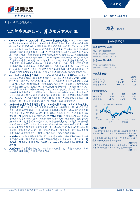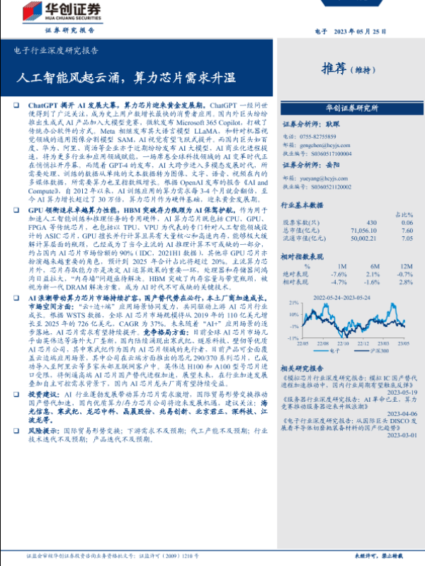 【华创证券】【20230525】电子行业深度研究报告:人工智能风起云涌,算力芯片需求升温-32页