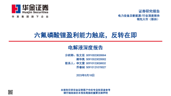 【华金证券】【20230518】电解液深度报告-六氟磷酸锂盈利能力触底-反转在即-45页