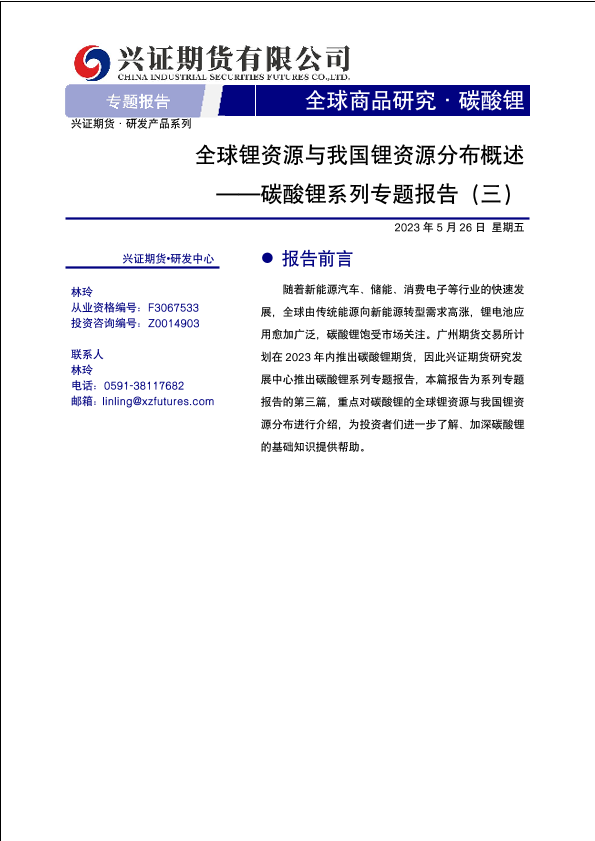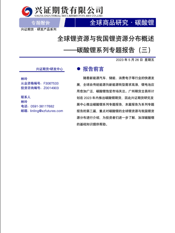 【兴证期货】【20230526】全球锂资源与我国锂资源分布概述-17页