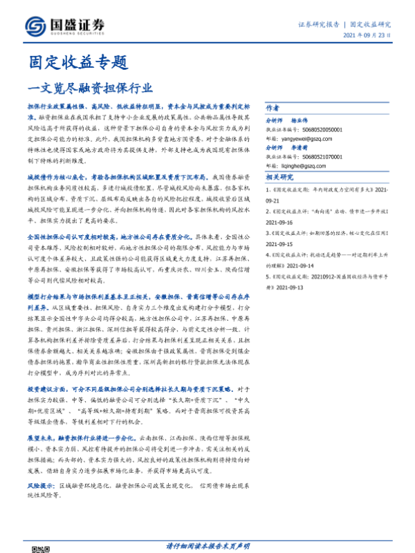 【国盛证券】【20210923】固定收益专题:一文览尽融资担保行业-40页