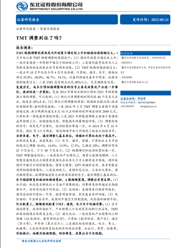【东北证券】【20230521】策略专题报告:TMT调整到位了吗?-25页