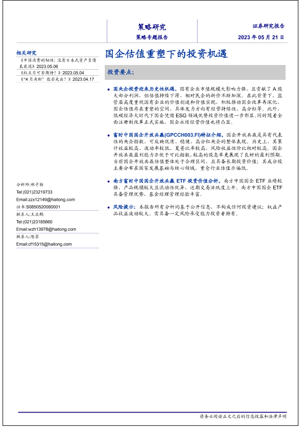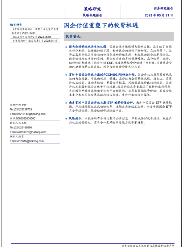 【海通证券】【20230521】策略专题报告:国企估值重塑下的投资机遇-18页