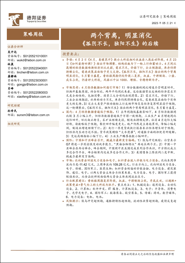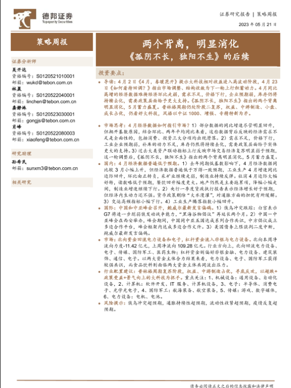 【德邦证券】【20230521】策略周报:《孤阴不长,独阳不生》的后续-两个背离,明显消化-28页