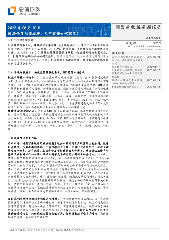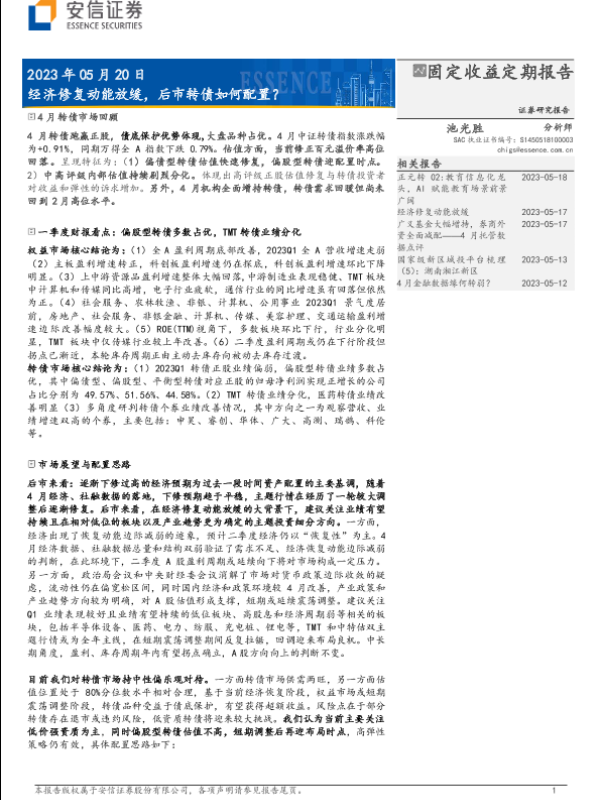 【安信证券】【20230520】经济修复动能放缓,后市转债如何配置?-23页