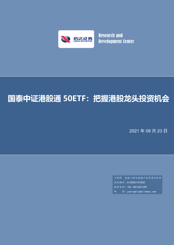 【信达证券】【20210923】国泰中证港股通50ETF:把握港股龙头投资机会-15页