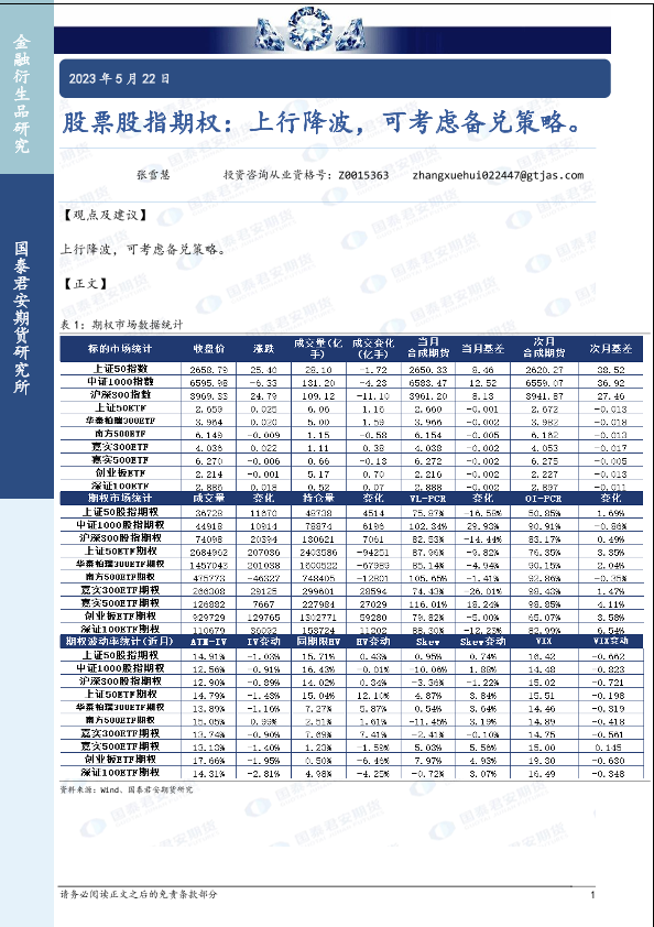 【国泰君安期货】【20230522】股票股指期权:上行降波,可考虑备兑策略。-32页