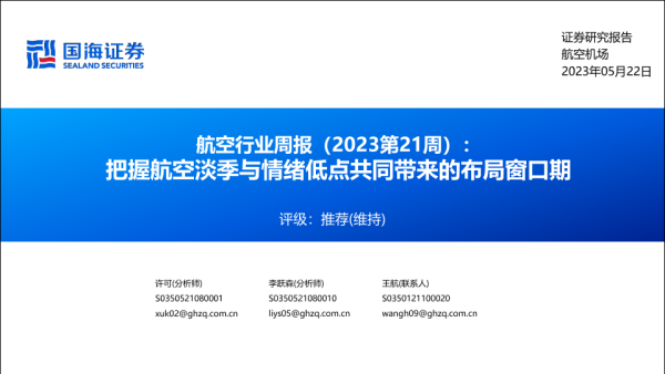 【国海证券】【20230522】航空行业周报(2023第21周):把握航空淡季与情绪低点共同带来的布局窗口期-31页